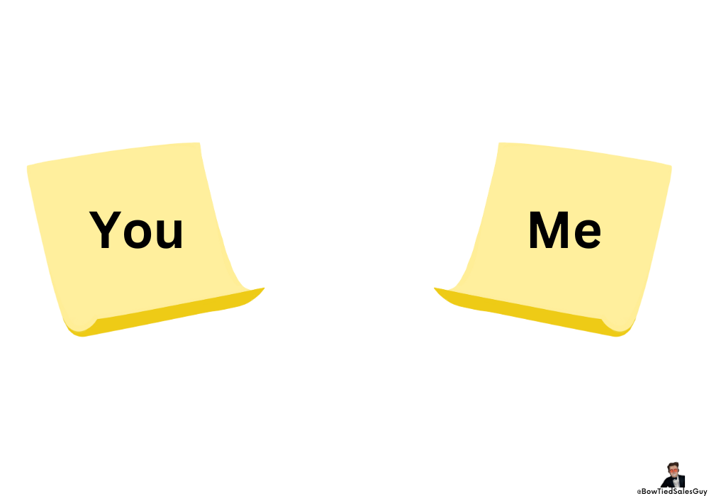 My mentor taught me to write “You” on one side of a piece of paper and “Me” on the other side.