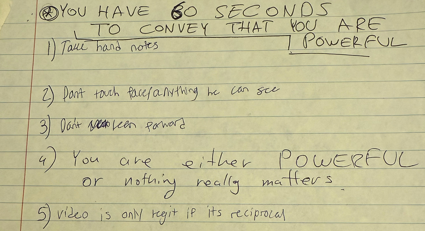 The genius of “You have 60 seconds to convey you are powerful” is also in the Framing of it.