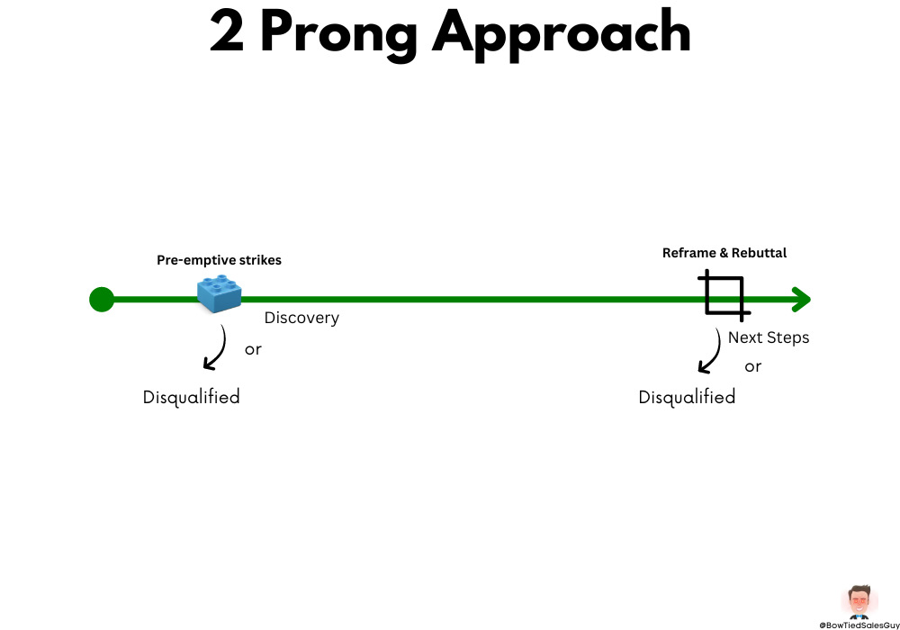 So think how you can “solve the problem” both on the spot in the form of a Reframe / Rebuttal and how you can lower the odds the “problem” comes up at the end.
